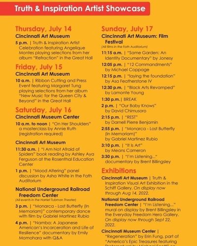 Part one of Black Arts Revamped will be showcased at the Cincinnati Art Museum on July 17th 2022 as part of Artswave Cincinnati's Truth and Inspiration artist showcase. The first showing will not be the final look as this a work in progress that will eventually be submitted to film festivals and streaming platforms.